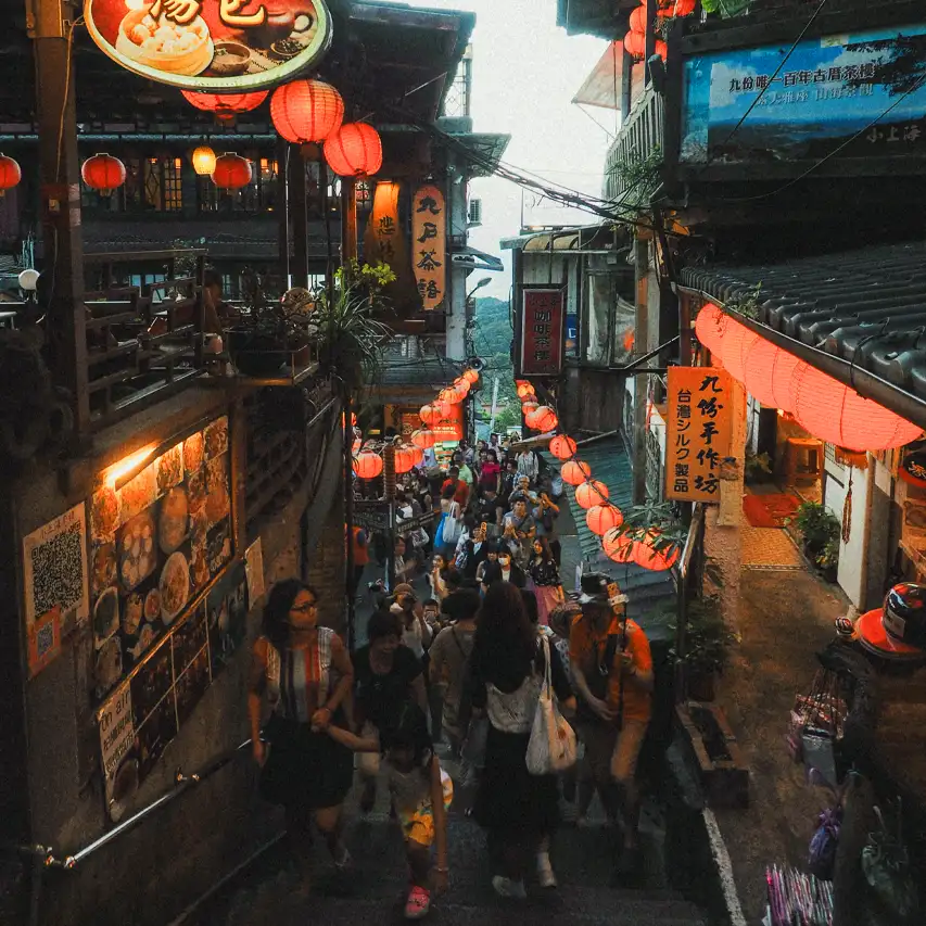 Jiufen es un pintoresco pueblo montañoso, muy conocido por sus icónicas farolas rojas de papel, que por la noche iluminan casi todas las calles, creando una atmósfera mágica y única.