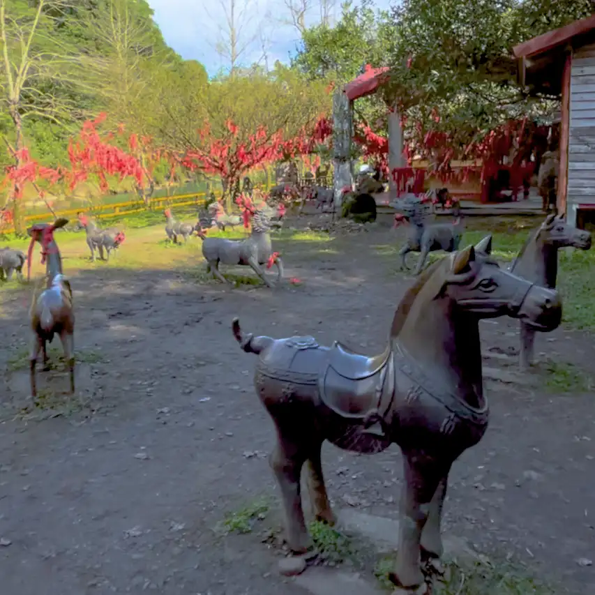 Cuando hayas atravesado el puente, deberás bajar unas escaleras y, abajo, te recibirá un sendero con estatuas de caballos. Es el Templo de los caballos.