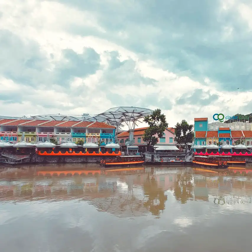 Clarke Quay era un antiguo muelle donde se encontraban los almacenes donde las embarcaciones dejaban sus mercancías. Hoy en día, es un centro comercial al aire libre que combina un estilo moderno con elementos tradicionales. Lo que más destaca son sus coloridas casitas y las gigantes sombrillas que, por la noche, se iluminan con luces de colores.