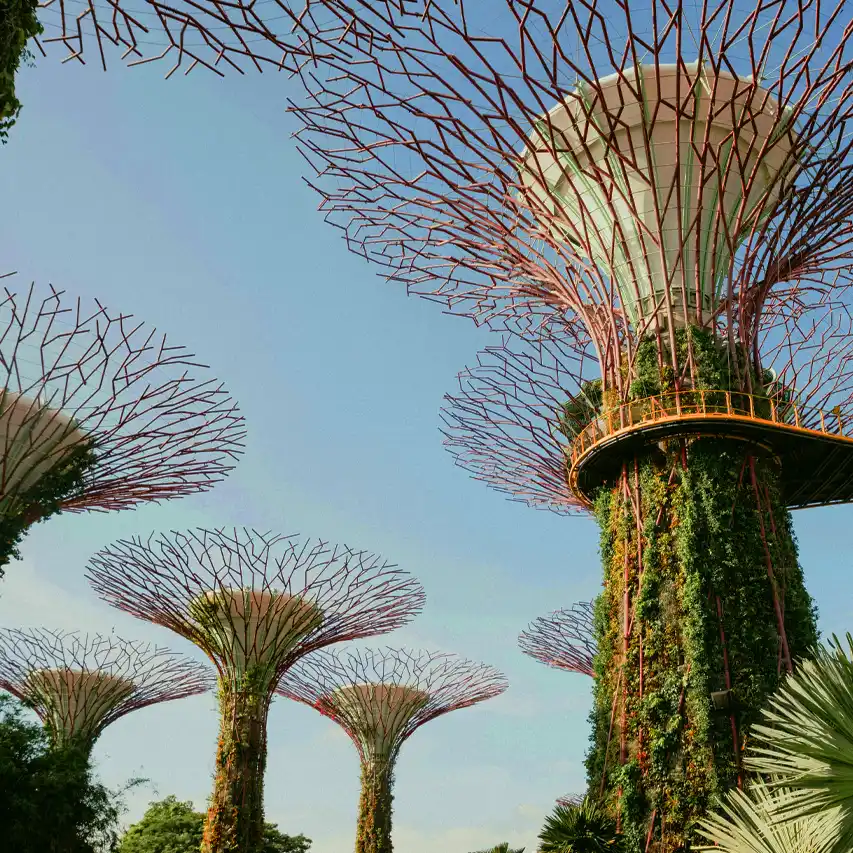 Los Supertrees (superárboles) son jardines verticales en forma de árbol y, sin lugar a dudas, son el gran ícono del parque y uno de los principales símbolos del país. Estos árboles artificiales se cargan de energía solar durante el día a través de sus numerosos paneles solares, y se autoabastecen de ella. Aunque esta zona del parque es gratuita, hay áreas en los superárboles a las que solo podrás acceder con una entrada.